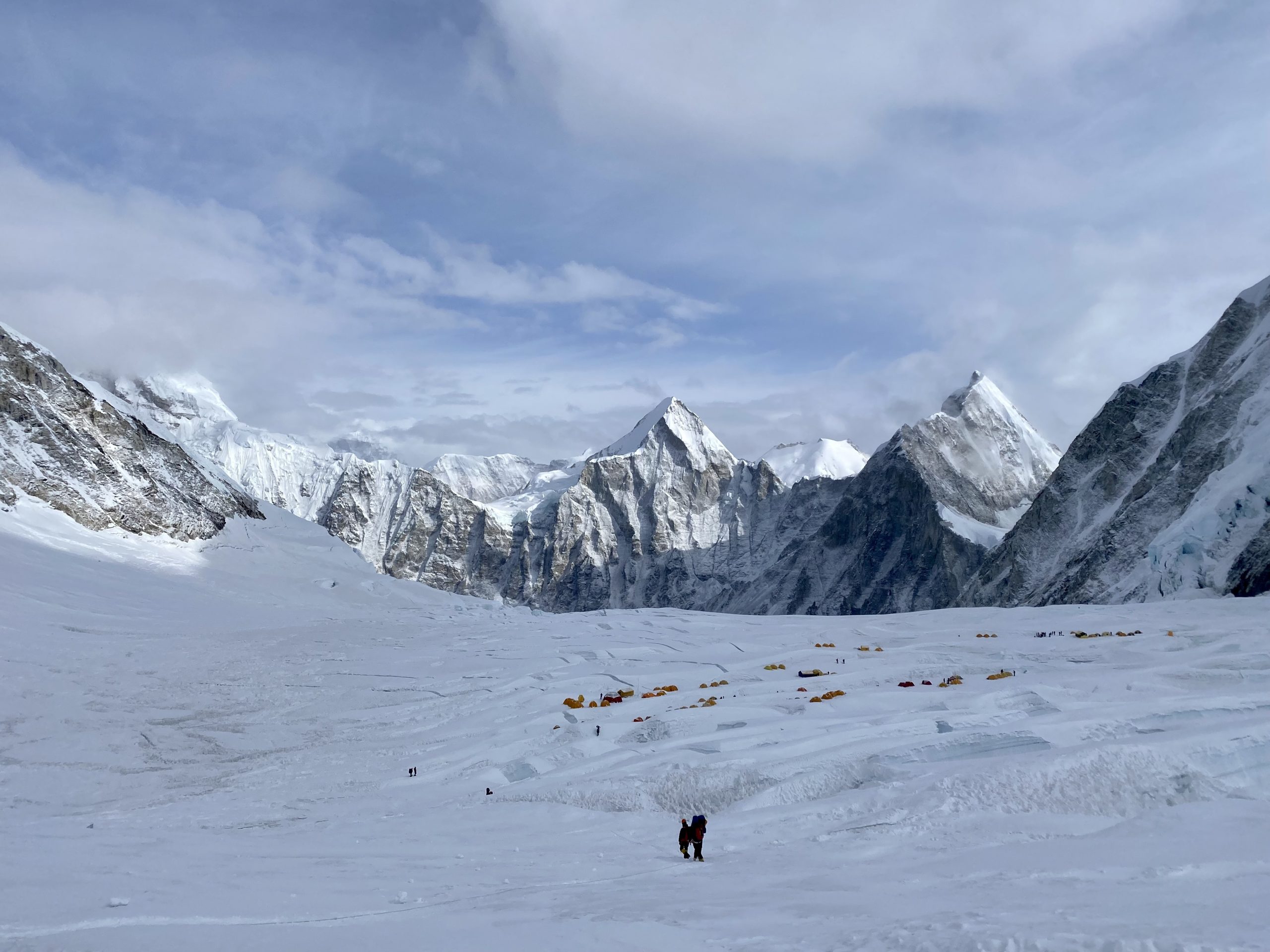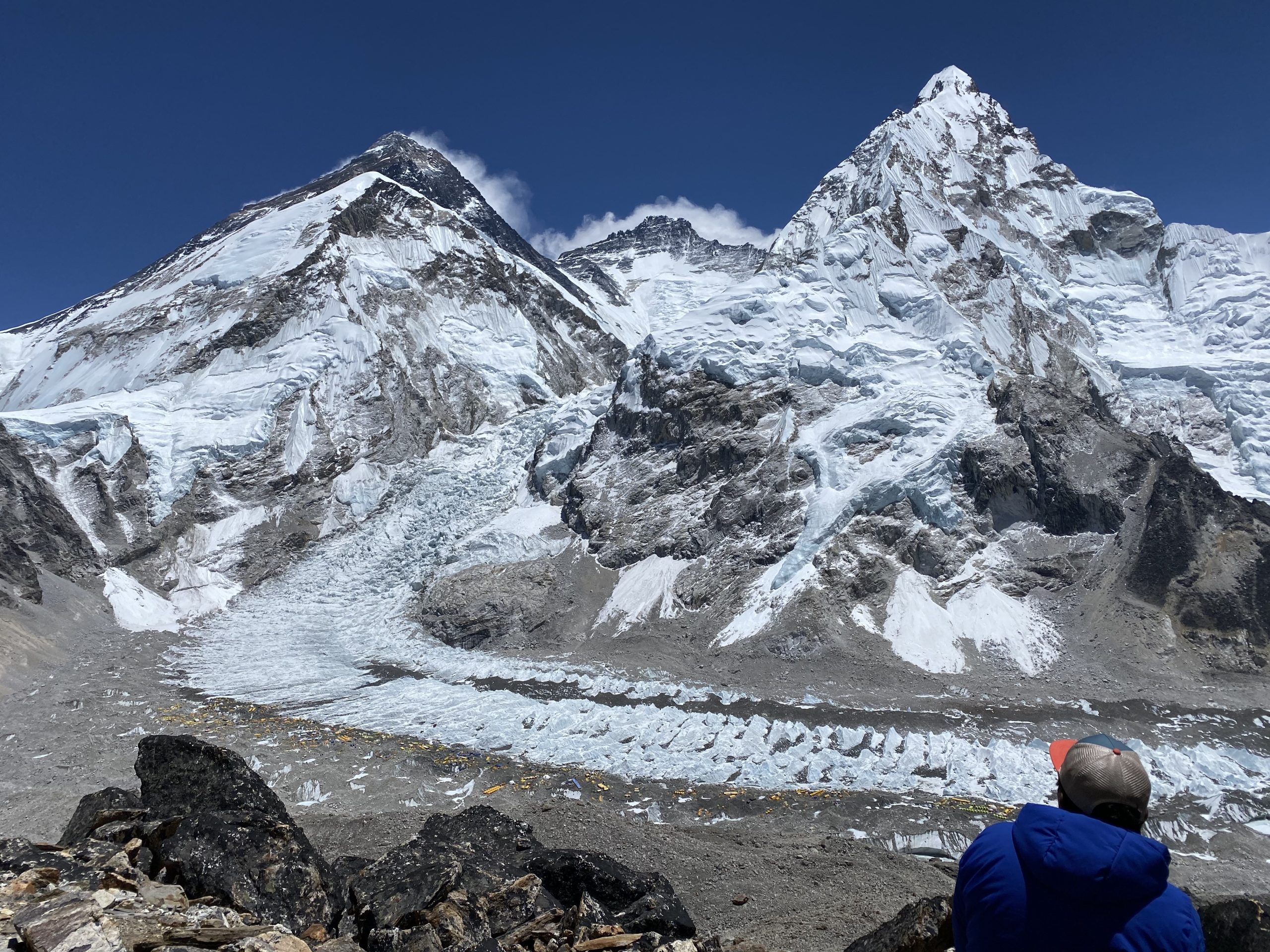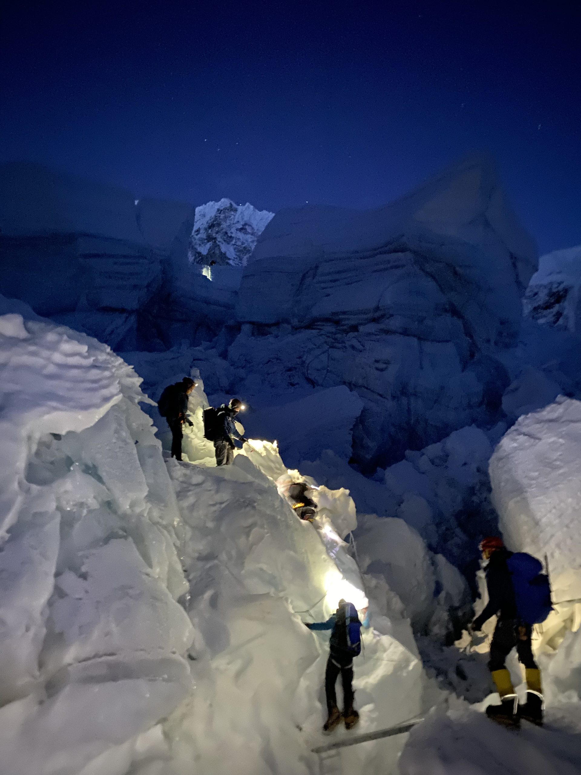 Everest Gallery Everest, Lhotse, and Nuptse, with Base Camp tents below Base Camp at night Camp 1 Above Camp 3, climbing toward the Yellow Band In the Khumbu Icefall Above Camp 1 Base Camp prayer flags Sunrise behind Makalu, taken from below Everest South Summit Early morning sun on Lhotse, taken from Everest Southeast Ridge Descending the Khumbu Icefall
