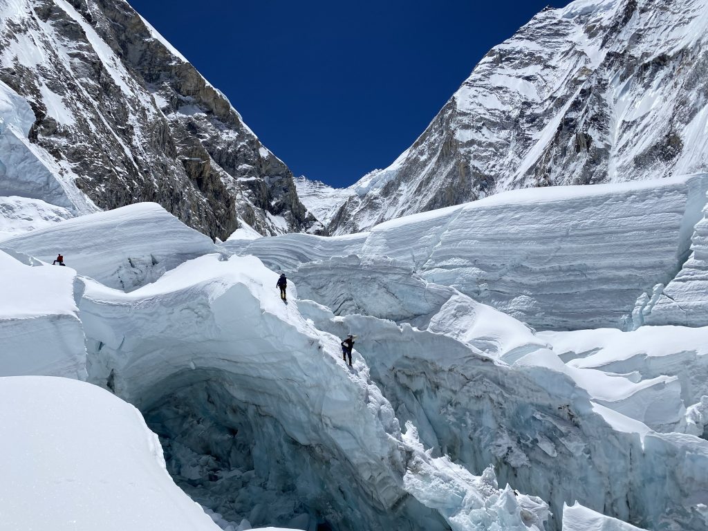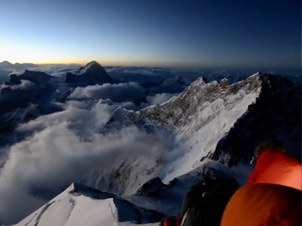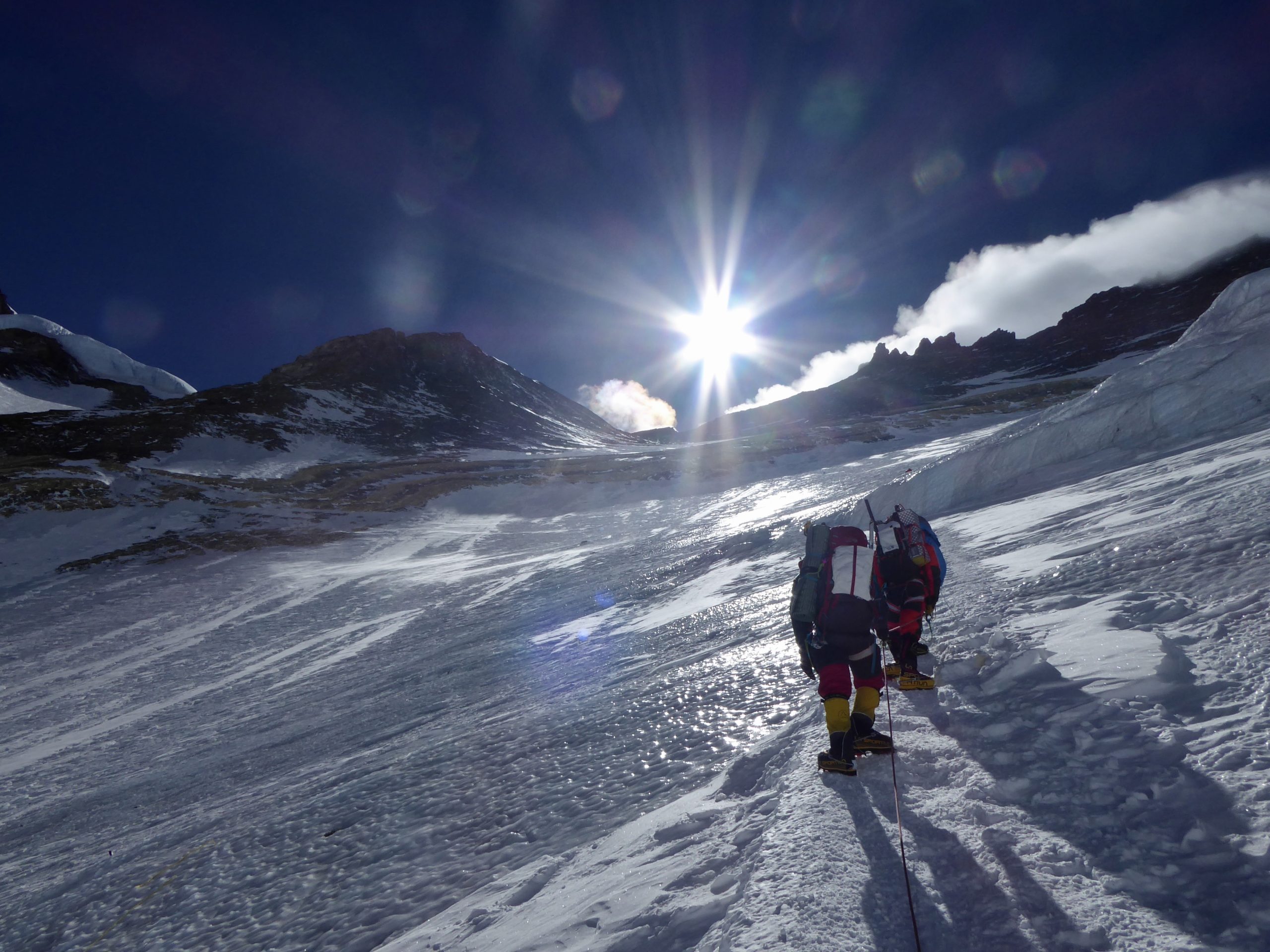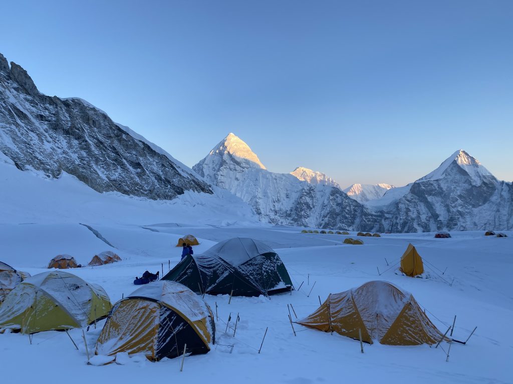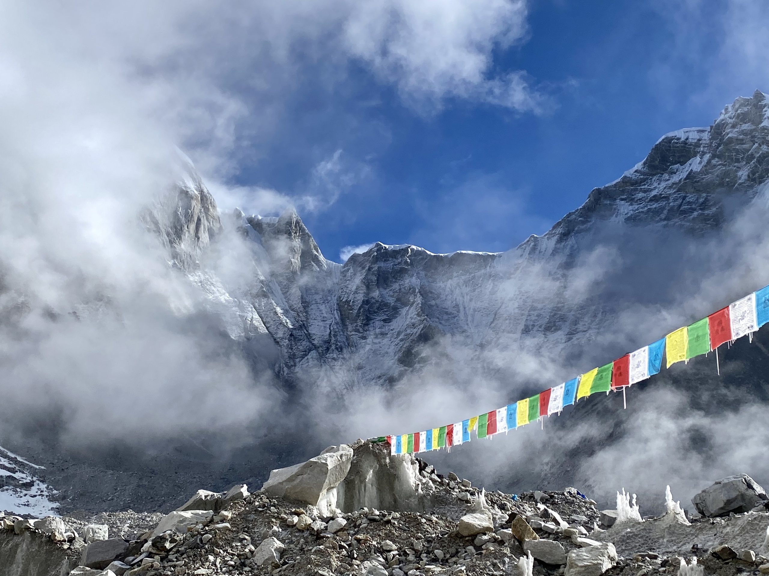 Everest Gallery Everest, Lhotse, and Nuptse, with Base Camp tents below Base Camp at night Camp 1 Above Camp 3, climbing toward the Yellow Band In the Khumbu Icefall Above Camp 1 Base Camp prayer flags Sunrise behind Makalu, taken from below Everest South Summit Early morning sun on Lhotse, taken from Everest Southeast Ridge Descending the Khumbu Icefall